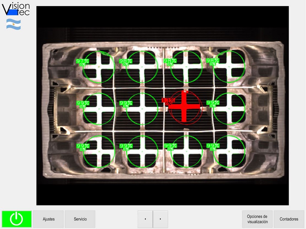 Dependiendo de la tarea, se puede usar un sistema de cámara adicional para el control de logo en la tapa, que duplica la resolución y permite verificar la existencia del correcto logotipo en cada una de las botellas.