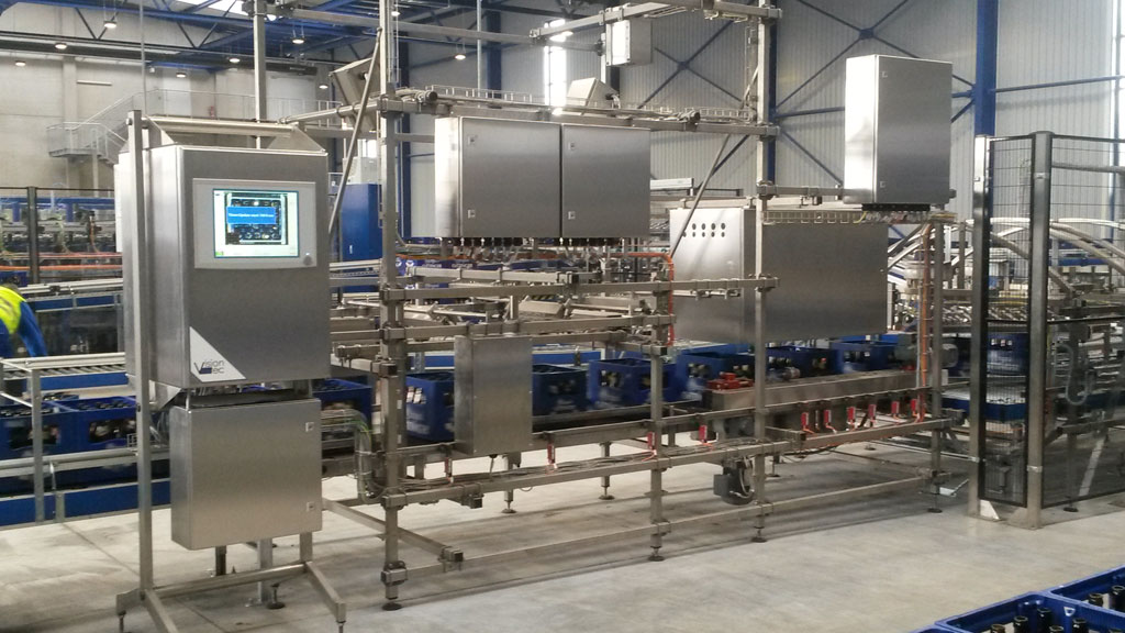 Se lleva a cabo la verificación de caja completa, análoga al control de caja vacía, ya sea mediante un sistema de cámara o mediante sensores ultrasónicos, que escanea las tapas de las botellas y envía las señales a la unidad de evaluación.