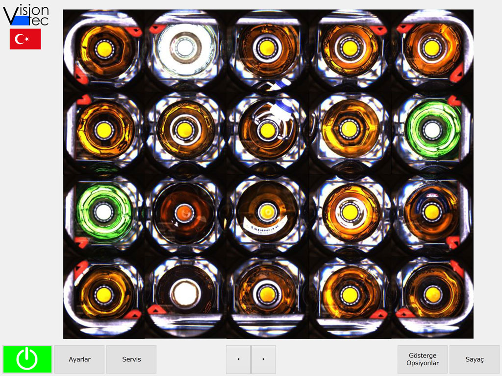 Dolu kasa denetimi – boş kasa denitimine benzer şekilde ya bir kamera sistemi aracılığıyla ya da şişelerin kapaklarını tarayan ve sinyalleri değerlendirme birimine ileten bir ultrasonik hat vasıtasıyla gerçekleştirilir.